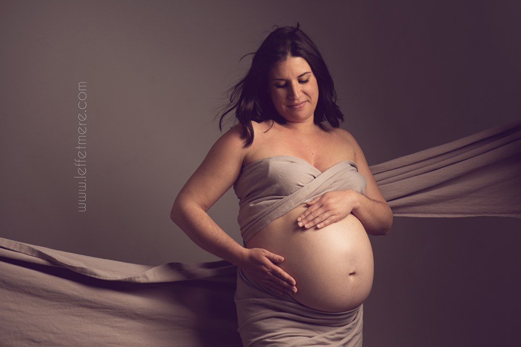 Pour cette séance, nous avons exploré deux univers complémentaires : la pureté du studio et la magie de l’eau. En studio, la lumière caresse la peau, dessine les lignes, souligne les émotions. Tout y est pensé pour créer des images intemporelles, élégantes et sensibles. Chaque détail compte : la gestuelle, le regard, la manière dont les mains se posent sur le ventre… C’est une célébration de la féminité, de la force et de la tendresse.