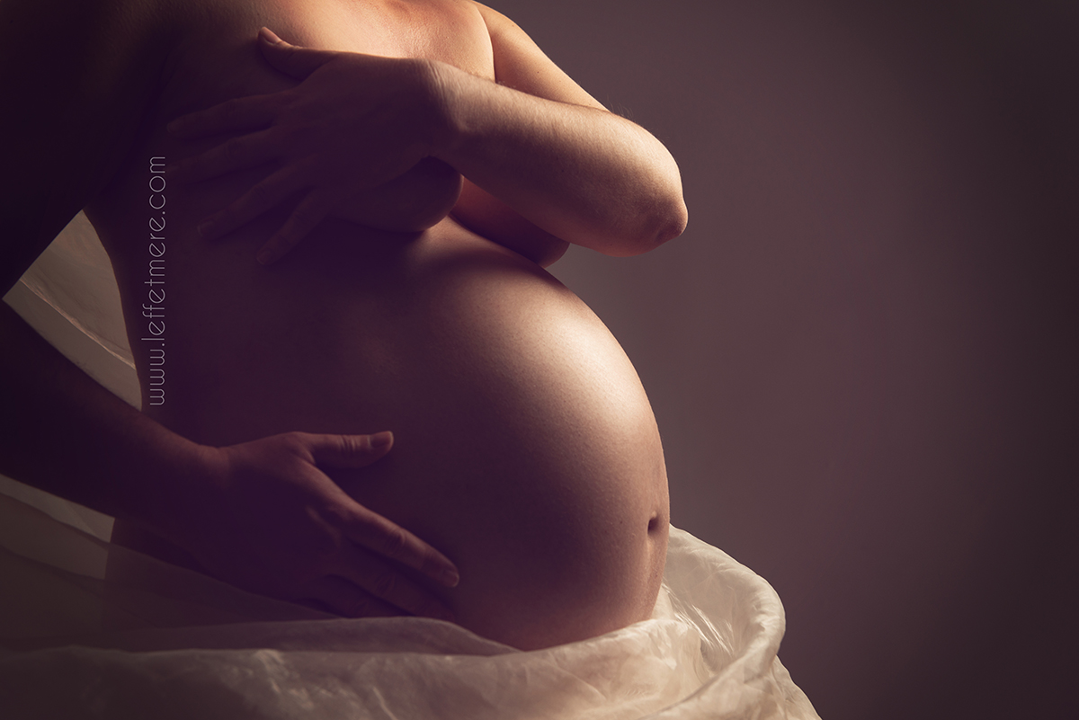 Pour cette séance, nous avons exploré deux univers complémentaires : la pureté du studio et la magie de l’eau. En studio, la lumière caresse la peau, dessine les lignes, souligne les émotions. Tout y est pensé pour créer des images intemporelles, élégantes et sensibles. Chaque détail compte : la gestuelle, le regard, la manière dont les mains se posent sur le ventre… C’est une célébration de la féminité, de la force et de la tendresse.